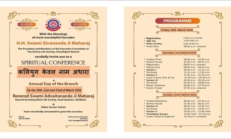 कलियुग केवल नाम आधारा”: चंडीगढ़ में दिव्य जीवन संघ द्वारा त्रिदिवसीय भक्ति, योग एवं वेदान्त महोत्सव का आयोजन 20, 21 एवं 22 मार्च को