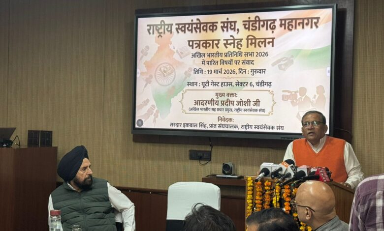 चंडीगढ़। चंडीगढ़ में आयोजित पत्रकार वार्ता के दौरान राष्ट्रीय स्वयंसेवक संघ के सह प्रचार प्रमुख प्रदीप जोशी ने संघ प्रतिनिधि सभा से जुड़े विषयों एवं पंजाब में चल रहे सामाजिक कार्यों को लेकर विस्तार से जानकारी दी। उन्होंने बताया कि आरआरएस राज्य में 145 से अधिक गैर-सरकारी संगठनों (एनजीओ) के साथ मिलकर नशा विरोधी अभियान को मजबूती से आगे बढ़ा रहा है। उन्होंने कहा कि पंजाब में नशे की समस्या एक गंभीर सामाजिक चुनौती है, जिसे जड़ से खत्म करने के लिए समाज के हर वर्ग को साथ आना होगा। इसी उद्देश्य से संघ द्वारा जागरूकता अभियान, काउंसलिंग सेशन और युवाओं के लिए प्रेरणादायक कार्यक्रम आयोजित किए जा रहे हैं। इन अभियानों के माध्यम से युवाओं को नशे से दूर रहकर सकारात्मक जीवन अपनाने के लिए प्रेरित किया जा रहा है। इसके साथ ही उन्होंने धर्मांतरण के मुद्दे पर भी चिंता जताई। उन्होंने कहा कि समाज में जागरूकता की कमी और आर्थिक व सामाजिक परिस्थितियों का लाभ उठाकर कुछ स्थानों पर धर्मांतरण की घटनाएं सामने आती हैं। इस विषय पर समाज को सजग रहने और आपसी एकता बनाए रखने की आवश्यकता है। उन्होंने जोर दिया कि जागरूकता और संवाद के माध्यम से ही इस तरह की चुनौतियों का समाधान संभव है। जोशी ने आगे बताया कि संघ युवाओं को राष्ट्र निर्माण में भागीदार बनाने के लिए विभिन्न गतिविधियां चला रहा है। जिन युवाओं के पास रोजगार या दिशा की कमी है, उन्हें कौशल विकास, स्वयंसेवा और सामाजिक कार्यों से जोड़ने का प्रयास किया जा रहा है। इससे न केवल उनकी ऊर्जा का सही उपयोग हो रहा है, बल्कि समाज में सकारात्मक बदलाव भी देखने को मिल रहा है। उन्होंने यह भी कहा कि संघ का मुख्य उद्देश्य समाज में जागरूकता फैलाना और लोगों को जोड़ना है, ताकि सामूहिक प्रयासों से पंजाब को नशा मुक्त और सशक्त बनाया जा सके। कार्यक्रम के अंत में उपस्थित पत्रकारों ने भी इन पहलों की सराहना की और इसे समाज के लिए एक महत्वपूर्ण कदम बताया।