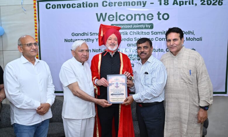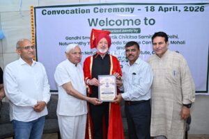 चण्डीगढ़ : ग्रेटीट्यूड वेलनेस रिट्रीट एवं गांधी स्मारक प्राकृतिक चिकित्सा समिति तथा सहयोगी संस्थाओं के संयुक्त तत्वावधान में आज एक दीक्षांत समारोह का आयोजन किया गया जिसमें मुख्य अतिथि के रूप में देश भगत यूनिवर्सिटी के चांसलर डॉ. जोरा सिंह उपस्थित हुए।