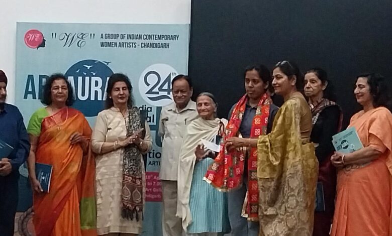 चण्डीगढ़ : वी – ए ग्रुप ऑफ इंडियन कंटेम्पररी वूमेन आर्टिस्ट्स, चण्डीगढ़ द्वारा 24वीं अखिल भारतीय वार्षिक महिला कलाकार प्रदर्शनी का सेक्टर-10 स्थित म्यूजियम एंड आर्ट गैलरी, चंडीगढ़ में आयोजन किया गया। इस मौके पर डॉ राजेंद्र कौर वाइस चेयरपर्सन आइपीएफ ग्रुप ने मुख्य मेहमान के तौर पर और स्वर्णजीत सिंह सावी, अध्यक्ष, पंजाब आर्ट्स काउंसिल और डॉ पंकज माला शर्मा, रिटायर्ड प्रोफेसर, डिपार्टमेंट ऑफ म्यूजिक फैकल्टी ऑफ डिजाइन एंड फाइन आर्ट्स, पंजाब यूनिवर्सिटी, चंडीगढ़ ने विशेष मेहमान के तौर पर शिरकत की और दीप प्रज्वलित कर कार्यक्रम का शुभारंभ कियाl इस मौके पर वी ग्रुप की फाउंडर प्रेसिडेंट (रिटायर्ड प्रिंसिपल सरकारी कॉलेज, डेराबस्सी ), श्रीमती साधना संगर और वी ग्रुप की सेक्रेटरी भारती शर्मा ने सभी का पहुंचने पर स्वागत और धन्यवाद कियाl यह भव्य कला प्रदर्शनी 10 अप्रैल तक चलेगीl इस प्रदर्शनी में देशभर से आई महिला कलाकारों ने अपनी उत्कृष्ट कलाकृतियों का प्रदर्शन किया। इस अवसर पर अवार्ड सेरेमनी का आयोजन भी किया गया जिसमें विजेता कलाकारों को पुरस्कृत किया गयाl निर्णायक मंडल में अराधना टंडन, अनीता गुप्ता एवं नूतन धीमान शामिल थीं, जिन्होंने विजेताओं का चयन किया। ग्यारह हजार रुपये प्रत्येक के पुरस्कार से रहनुमा रानी (चंडीगढ़), शीतल चितलांगिया (जयपुर) तथा डॉ. जैस्मिन कौर (सूरत) को सम्मानित किया गया, जबकि पांच हजार रुपये प्रत्येक के पुरस्कार से कविता राजपूत (दिल्ली), मीनाक्षी वाधवा (दिल्ली) एवं विंकी कौर (मोहाली) को सम्मानित किया गया। इसके अतिरिक्त, मेरिट प्रमाण पत्र मंजिरी (मुंबई), एडवोकेट दीपिका (डेराबस्सी), निशा अग्रवाल (चंडीगढ़), आस्था (चंडीगढ़) तथा ज्योति ताम्हणे को प्रदान किए गए। बाल वर्ग में एलेनोर रैक्स सेराओ (मुंबई) को पुरस्कार प्रदान किया गया, जबकि मेरिट प्रमाण पत्र जेसिका सिमरित लूथरा कॉक्स (ऑक्सफोर्ड) एवं प्रांजल (डेराबस्सी) को दिए गए।